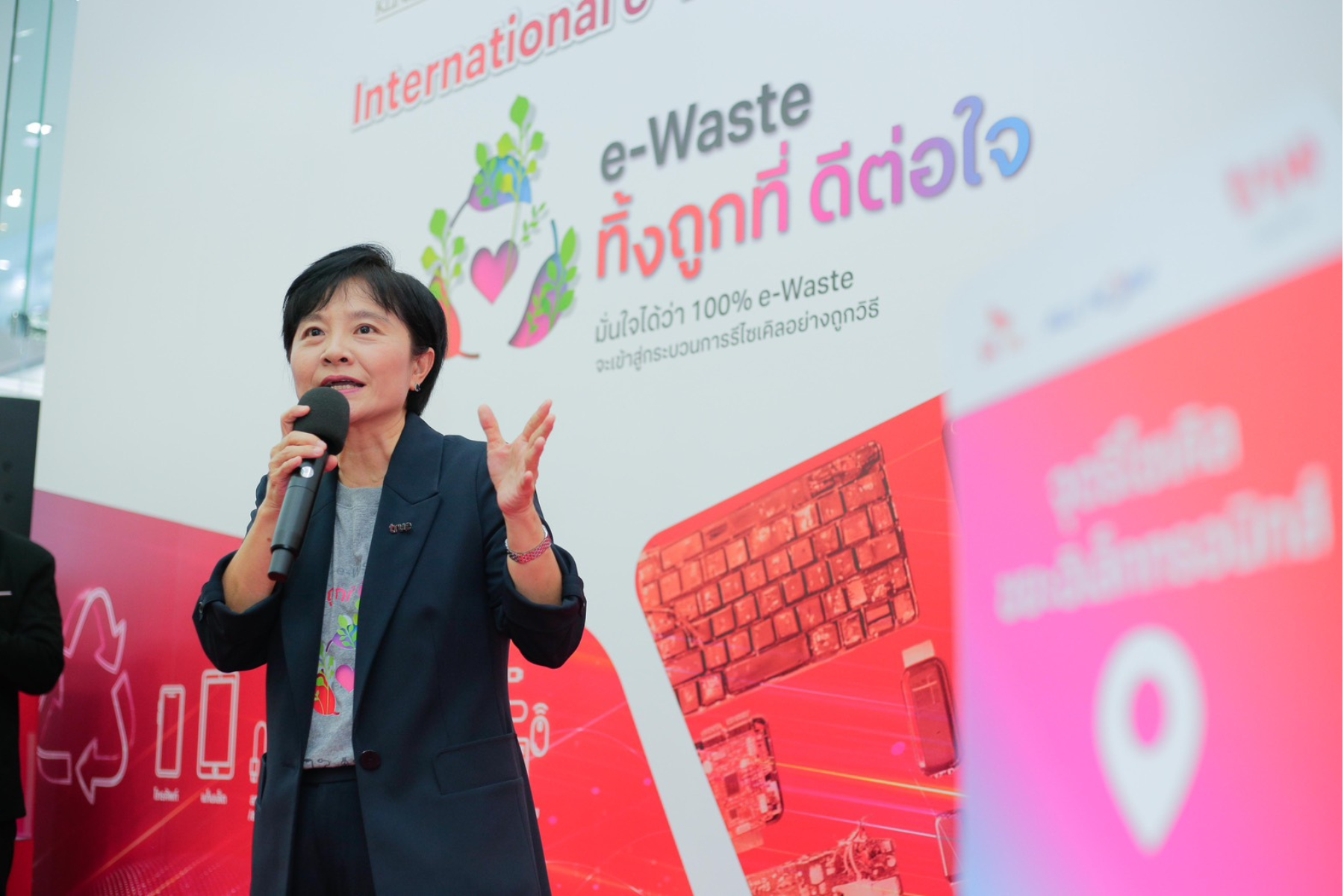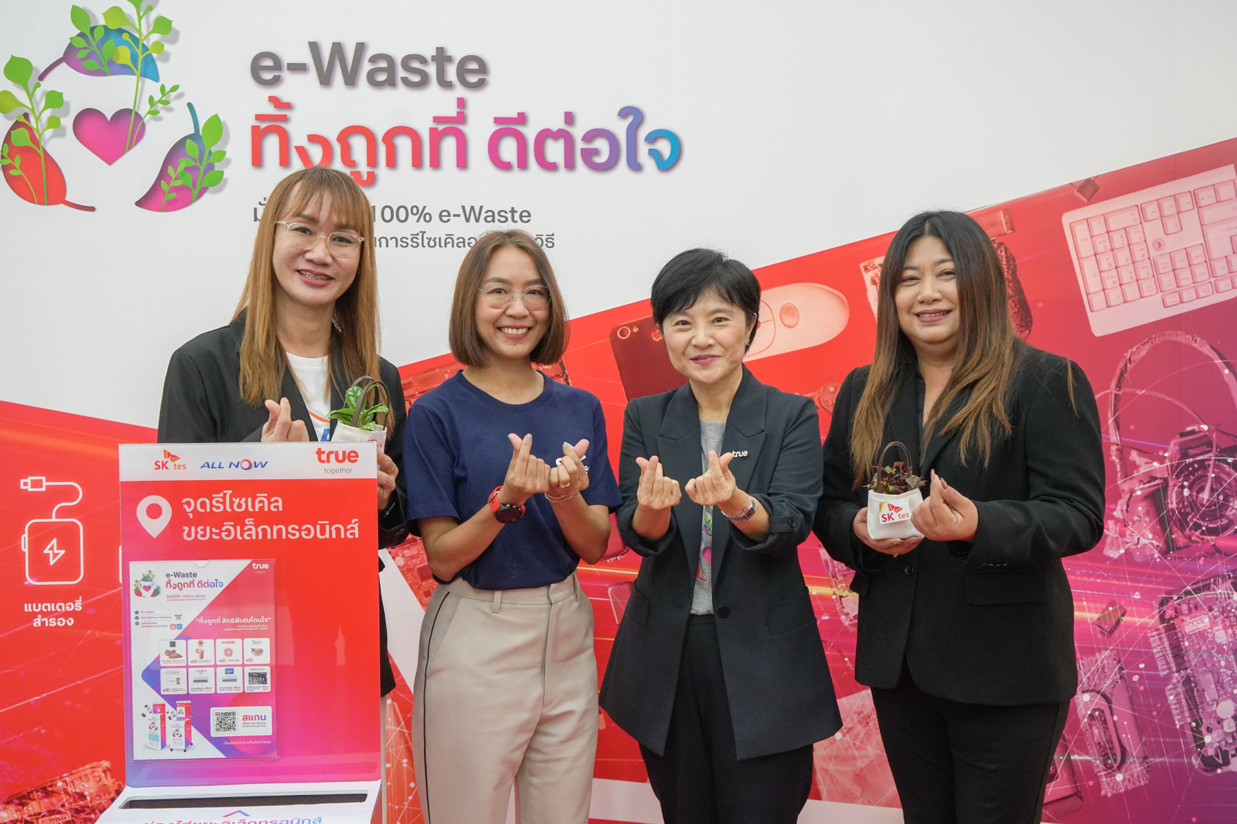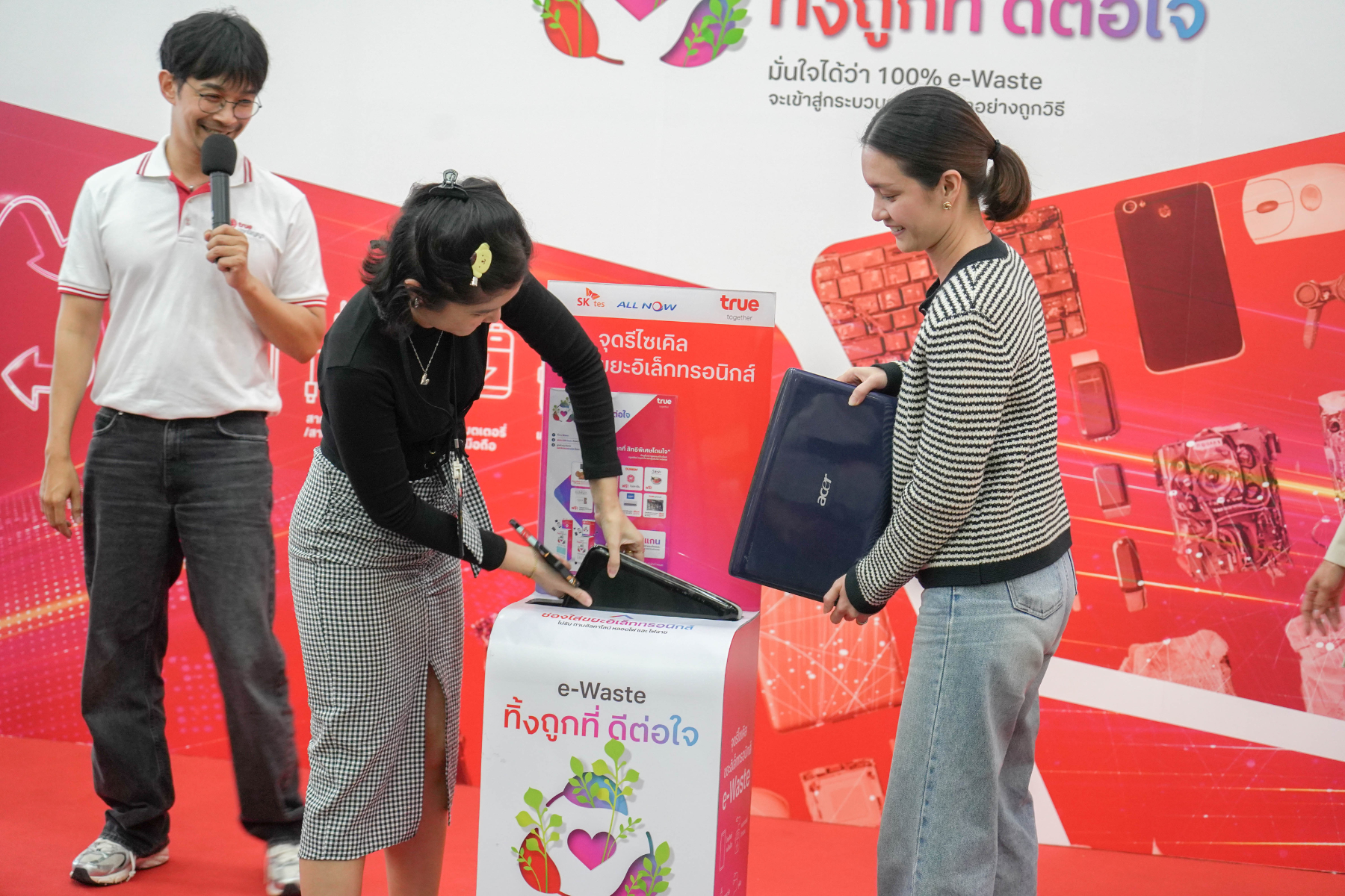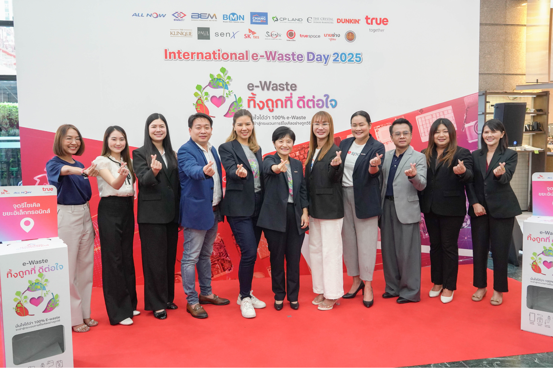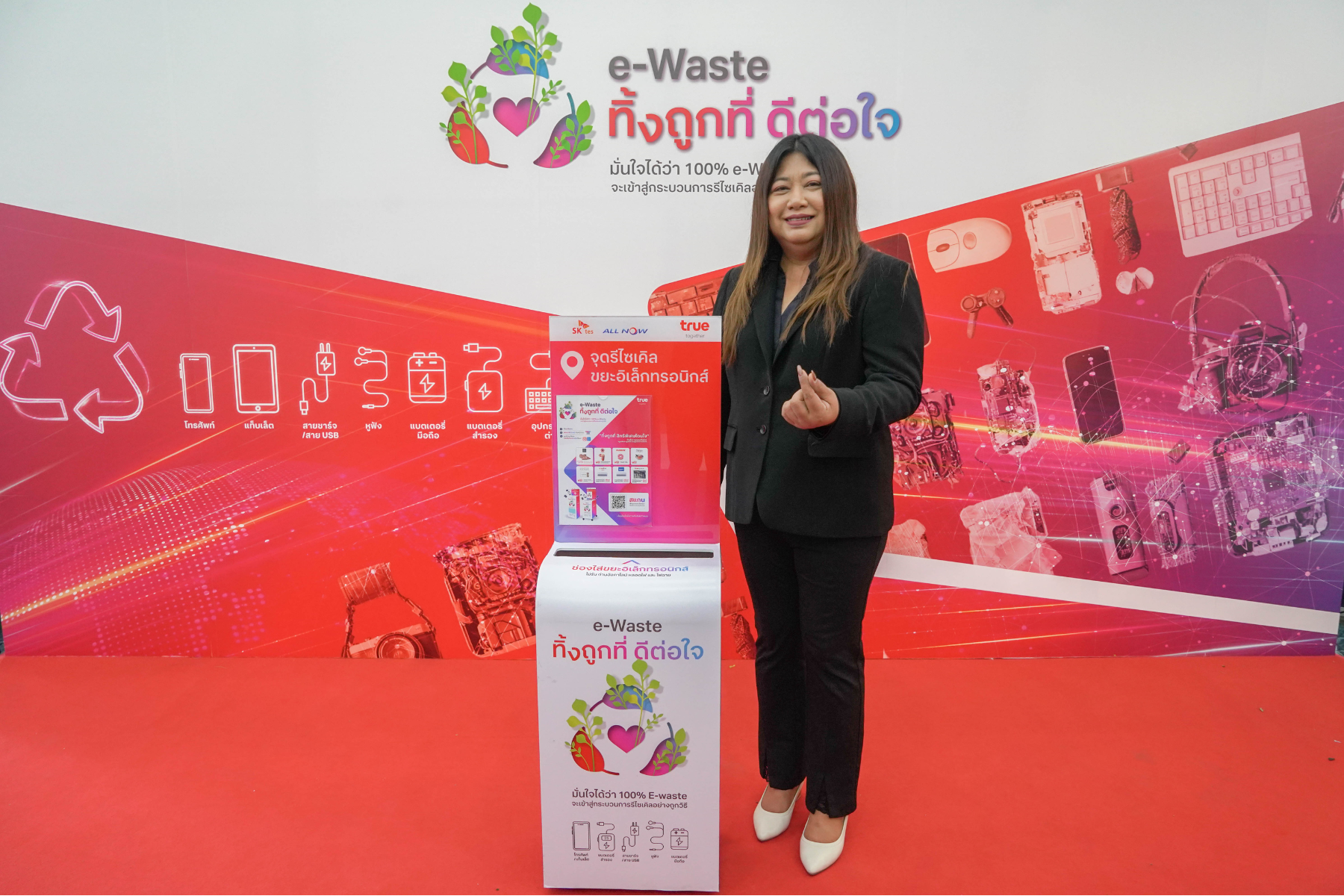ด้าน ดร.เนตรชนก วิภาตะศิลปิน หัวหน้าสายงานด้านความยั่งยืนองค์กร บมจ.ทรู คอร์ปอเรชั่น กล่าวว่า “ปัญหาขยะอิเล็กทรอนิกส์กำลังกลายเป็นความท้าทายระดับโลกที่ทุกภาคส่วนต้องร่วมกันแก้ไข เพราะอุปกรณ์ดิจิทัลที่เราใช้ทุกวัน หากไม่ได้รับการจัดการอย่างถูกวิธี จะกลายเป็นภาระต่อสิ่งแวดล้อมในระยะยาว ทรู คอร์ปอเรชั่น พร้อมด้วยพันธมิตร ในฐานะผู้นำด้านโทรคมนาคมและเทคโนโลยี จึงมุ่งมั่นลดผลกระทบดังกล่าวอย่างจริงจัง โดยได้รวบรวมขยะอิเล็กทรอนิกส์เข้าสู่กระบวนการรีไซเคิลตามมาตรฐานสากลแล้วกว่า 1.99 ล้านชิ้น และยังคงเดินหน้าสู่เป้าหมาย ‘Zero e-Waste to Landfill’ อย่างต่อเนื่อง ปีนี้ เราได้ยกระดับโครงการในเชิงรุก ผ่านรูปแบบ ‘ทิ้งถูกที่ ดีต่อใจ สัญจร’ ส่งรถรับขยะอิเล็กทรอนิกส์ถึงที่ เพื่อให้ประชาชน องค์กร และภาคธุรกิจ สามารถส่งต่อ e-Waste เข้าสู่ระบบจัดการที่ถูกต้องได้ง่ายและสะดวกยิ่งขึ้น โดยเริ่มนำร่องที่จังหวัดพระนครศรีอยุธยา และขยายสู่จุดสำคัญทั่วกรุงเทพฯ และปริมณฑล ความร่วมมือจากพันธมิตรทั้งภาครัฐและเอกชนครั้งนี้ สะท้อนเจตนารมณ์ร่วมของทุกภาคส่วน ที่ต้องการสร้างสังคมที่ตระหนักรู้ และร่วมกันดูแลสิ่งแวดล้อม เพื่ออนาคตที่ยั่งยืนของประเทศไปด้วยกัน” โดยหลังจากเสร็จสิ้นพิธีเปิด ผู้บริหารได้เข้าร่วมกิจกรรมปล่อยขบวนรถรับขยะอิเล็กทรอนิกส์หน้าอาคารทรู ทาวเวอร์ ซึ่งถือเป็นจุดเริ่มต้นของการขับเคลื่อนภารกิจด้านสิ่งแวดล้อมร่วมกัน พร้อมทั้งเยี่ยมชมบูธกิจกรรมที่จัดขึ้นเพื่อรณรงค์ให้ทุกคนตระหนักถึงความสำคัญของการคัดแยกและรีไซเคิลขยะอิเล็กทรอนิกส์ (e-Waste) อย่างปลอดภัยและได้มาตรฐาน”