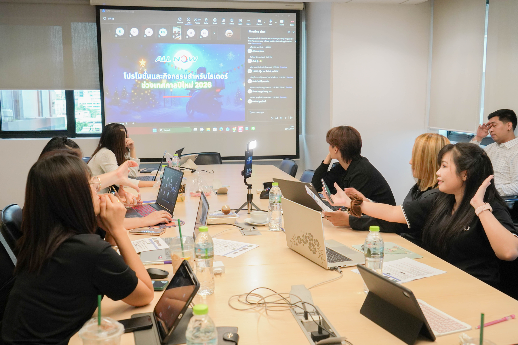 ภายในงานผู้ประกอบการได้สื่อสารและแลกเปลี่ยนความคิดเห็นกับไรเดอร์ผ่านการไลฟ์สด พร้อมอัปเดตข้อมูลสำคัญทั้งด้านโปรโมชันและโอกาสสนับสนุนการทำงานในช่วงเทศกาลปีใหม่ 2569 ที่กำลังจะมาถึง ภายใต้บรรยากาศที่เป็นกันเองและความตั้งใจจริง อันสะท้อนถึงความร่วมมือระหว่าง ALL Now และผู้ประกอบการทุกท่าน