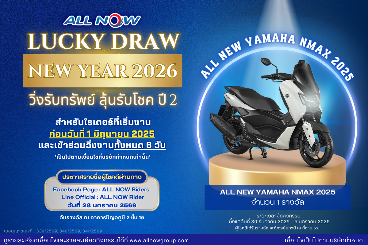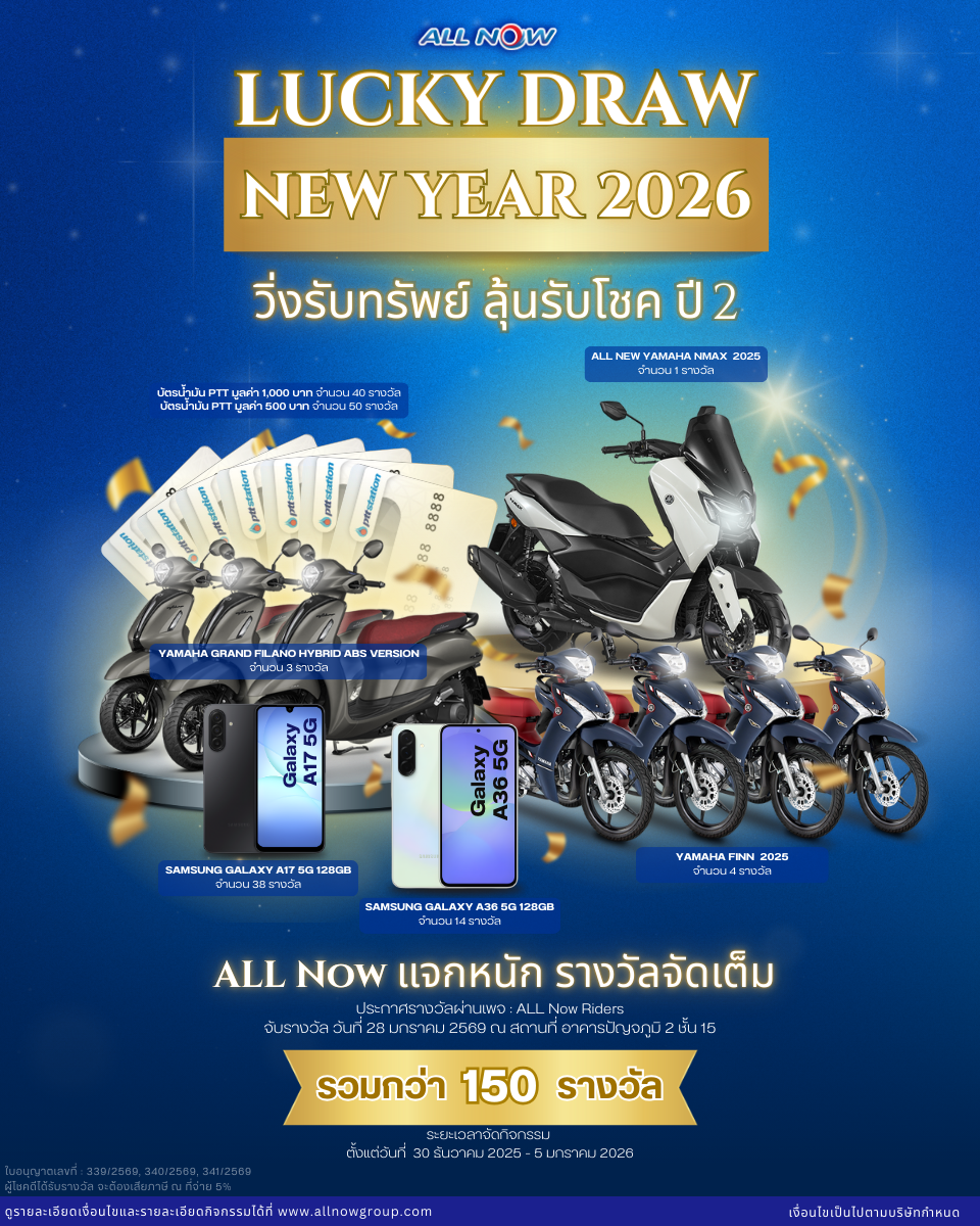 2. ประกาศรายชื่อผู้โชคดีในรูปแบบสื่อประชาสัมพันธ์ผ่านช่องทาง Facebook Page: ALL NOW Riders และ LINE OA: ALL NOW Rider ในวันที่ 28 มกราคม 2569 เวลา 18.30 น.
