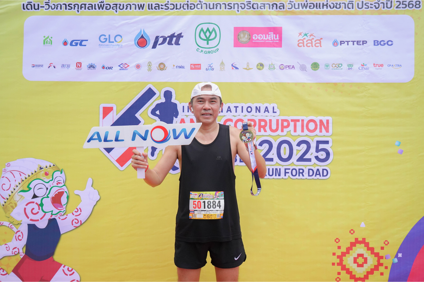 เมื่อวันที่ 5 ธันวาคม 2568 ที่ผ่านมา ALL Now ได้เข้าร่วมการแข่งขันวิ่งการกุศลต่อต้านทุจริตสากล และวันพ่อแห่งชาติ ประจำปี 2568 (INTERNATIONAL ANTI-CORRUPTION DAY RUN FOR DAD 2025) ชิงถ้วยพระราชทาน สมเด็จพระกนิษฐาธิราชเจ้า กรมสมเด็จพระเทพรัตนราชสุดาฯ สยามบรมราชกุมารี ณ สวนหลวง ร.9 และบึงหนองบอน กรุงเทพมหานคร