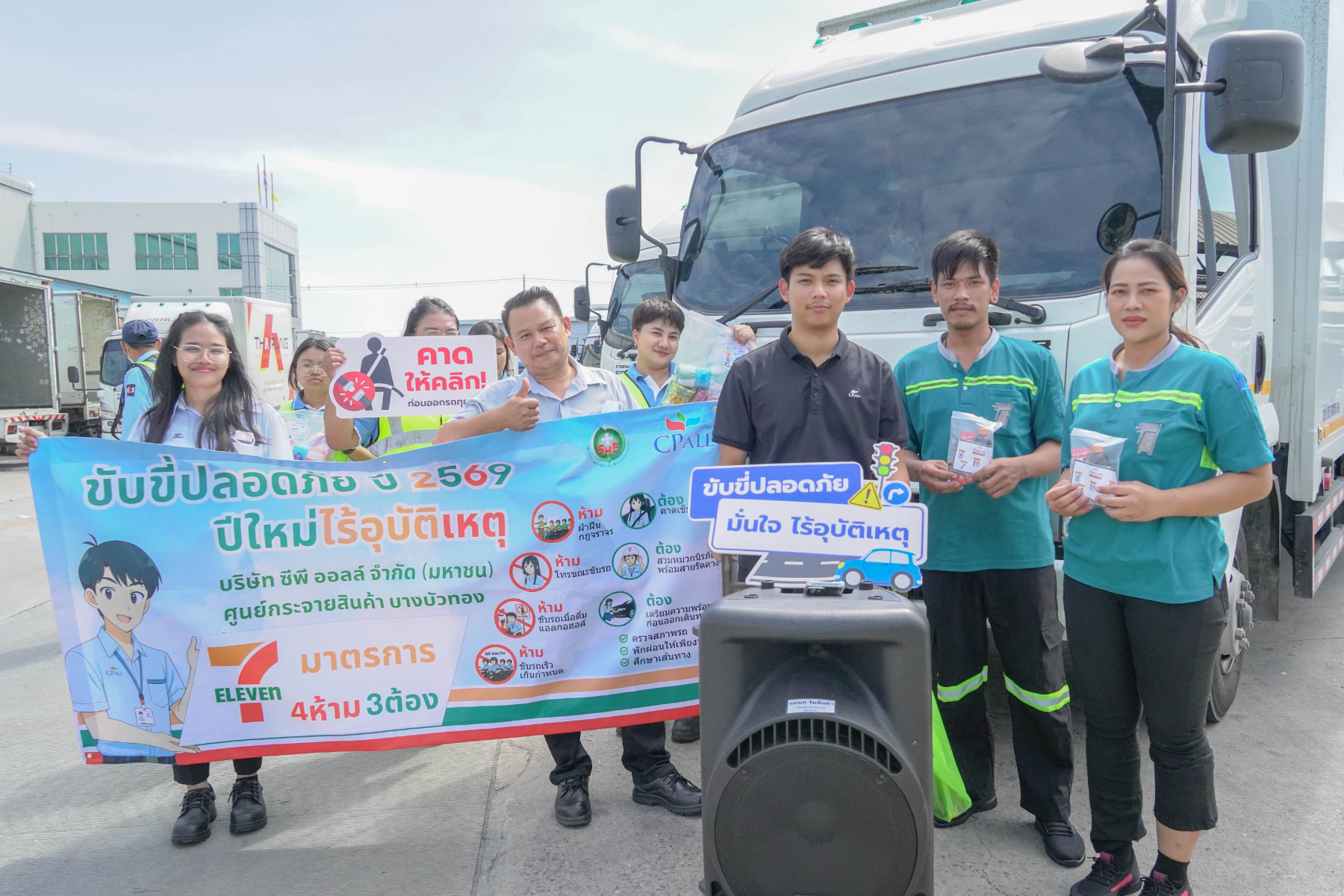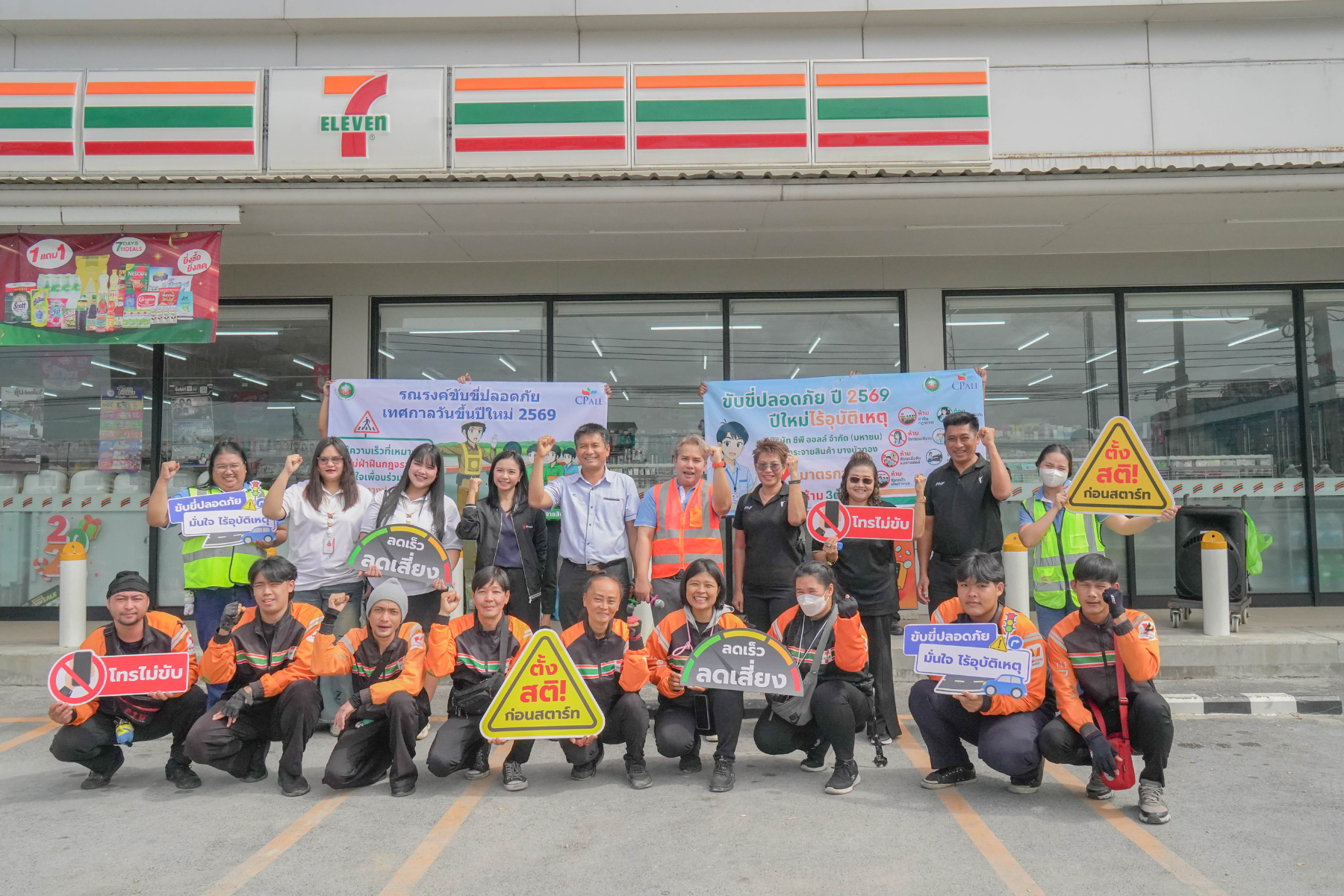 การรณรงค์ขับขี่ปลอดภัย ลดอุบัติเหตุช่วง 7 วันอันตรายครั้งนี้ ประกอบด้วยกิจกรรม ‘Safety Talk’ เพื่อเน้นย้ำแนวทางการขับขี่อย่างปลอดภัยในช่วงเทศกาลปีใหม่ ซึ่งเป็นช่วงที่มีการใช้รถใช้ถนนหนาแน่นเป็นพิเศษ พร้อมทั้งการแจกชุดสิ่งของจำเป็นสำหรับผู้ขับขี่ และสื่อรณรงค์ด้านความปลอดภัยบนท้องถนน เพื่อช่วยเสริมความพร้อมในการปฏิบัติงานและลดความเสี่ยงในการเกิดอุบัติเหตุ โดยครอบคลุมกลุ่มผู้ปฏิบัติงานจาก CP All, CP Axtra และ ALL Now Complex