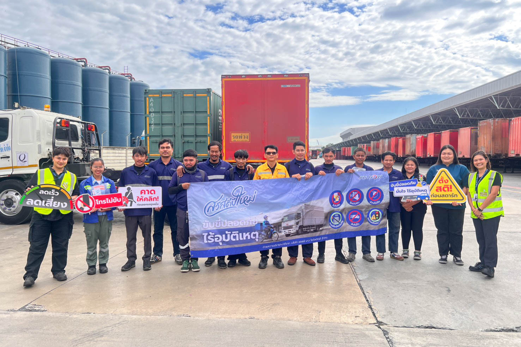 เมื่อวันที่ 11-25 ธันวาคม 2568 ที่ผ่านมา ทีมงานจากสำนัก Safety and Security บริษัท ออลล์ นาว โลจิสติกส์ จำกัด (ALL NOW LOGISTICS CO., LTD.) ได้ลงพื้นที่จัดกิจกรรมรณรงค์ความปลอดภัยในการขับขี่ต้อนรับเทศกาลปีใหม่ ภายใต้แนวคิด ‘ขับขี่ปลอดภัย ไร้อุบัติเหตุช่วง 7 วันอันตราย’ เพื่อเสริมสร้างความตระหนักด้านความปลอดภัยให้กับไรเดอร์และพนักงานขับรถ (พขร.) ในระบบขนส่งของ ALL Now อย่างครอบคลุมการปฏิบัติงานตั้งแต่รถจักรยานยนต์ไปจนถึงรถบรรทุกขนาด 22 ล้อ