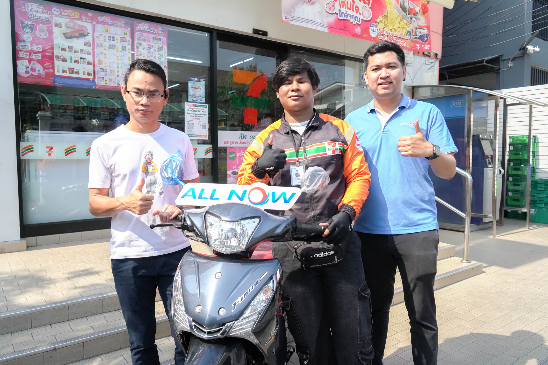 เมื่อวันที่ 19-20 กุมภาพันธ์ 2569 ที่ผ่านมา บริษัท ออลล์ นาว โลจิสติกส์ จำกัด (ALL NOW LOGISTICS CO., LTD.) นำโดย ผู้บริหารจากบริษัท ออลล์ นาว โลจิสติกส์ จำกัด คุณณัฐพล สังข์สอน ผู้จัดการแผนก Last Mile Vendor Relationship Management - 2W พร้อมด้วยทีมงาน ทั้งยังได้รับเกียรติจากตัวแทนบริษัท ซีพี ออลล์ จํากัด (มหาชน) คุณสุรชัย เกิดผล เจ้าหน้าที่อาวุโสฝ่ายดูแลและพัฒนาคู่ค้า ระบบงานขนส่ง พร้อมด้วยทีมงาน ได้ลงพื้นที่เพื่อมอบรางวัลให้กับไรเดอร์เซเว่นฯ เดลิเวอรี่ ออลล์ นาว ผู้โชคดีจากกิจกรรม NEW YEAR LUCKY DRAW 2026 ‘วิ่งรับทรัพย์ ลุ้นรับโชค ปี 2’ ณ หน้าร้านสาขา เพื่อเป็นการขอบคุณและชื่นชมในความมุ่งมั่นทุ่มเทของไรเดอร์ผู้โชคดี รวมถึงผู้ร่วมกิจกรรมฯ ทุกท่านที่เลือกวิ่งงานกับเราในช่วงเทศกาลปีใหม่ที่ผ่านมา